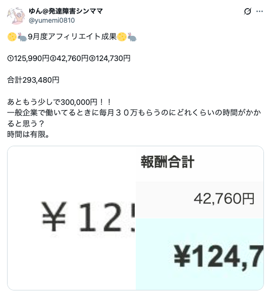 ゆん@発達障害シンママ:9月「293,480円」