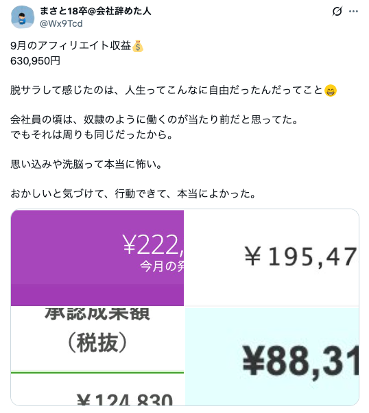 まさと18卒@会社辞めた人:9月「630,950円」