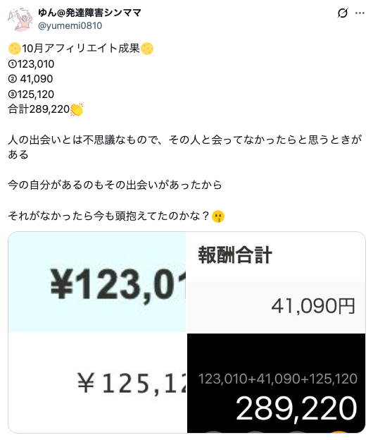 ゆん@発達障害シンママ:10月「289,220円」