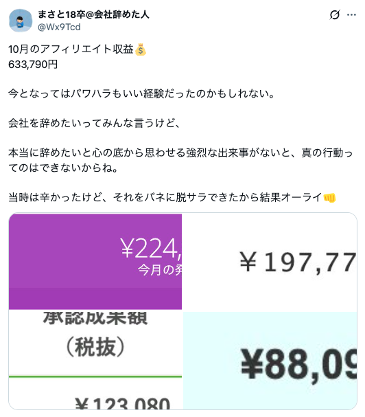 だからいつでも仕事辞められるように副業で収入源を作ったら、心に余裕が持てて、会食恐怖症の症状も今は軽くなった✨️ pic.twitter.com/ShGB5lrUQe