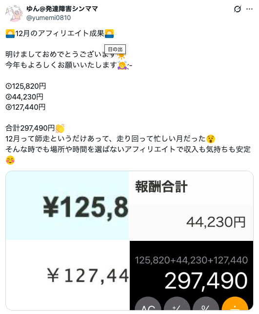 ゆん@発達障害シンママ:12月「297,490円」